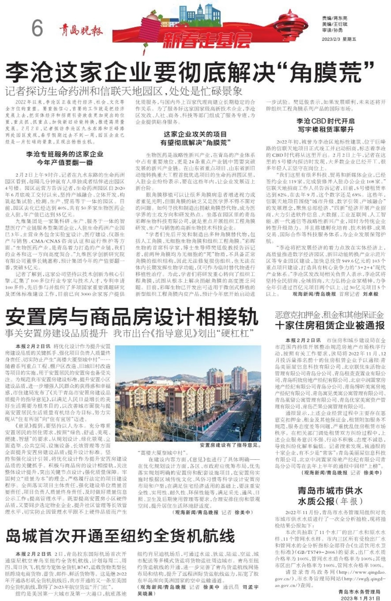 2022年以来,李沧区正在进行经济、社会、文化等全方位的重塑。要重振信心,首要的工作就是把经济发展上去,把实体经济和招商引资放在更加突出的位置,重点抓、抓重点,加快新旧动能转换,推进高质量发展。2月2日,记者探访李沧区九水东路和巨峰路两处园区发现,春节假期过去不到一周,园区企业已经是一片忙碌的景象,呈现出勃勃生机。 李沧专班服务的这家企业 今年产值要翻一番 2月2日上午9时许,记者在九水东路的生命药洲园区看到,每隔几分钟就有人单独或者结伴进出园区4号楼。园区运营方告诉记者,生命药洲园区自2020年6月底竣工交付以来,坚持产城融合、立体开发,构筑起集试验、检测、生产、贸易等于一体的园区。目前,园区去化已经达到40%,共有50多家生物医药企业入驻,年产值已达到55亿元。 九维集团是一家集科研、生产、服务于一体的智慧医疗产业链服务型集团企业,入驻生命药洲产业园已3年,主营业务包含实验室设计、医疗建设、仪器生产与销售、CMA/CNAS咨询认证和运行维护等方面。“生物医药产业,是青岛着力打造的产业链,我们的业务和这一方向高度契合。”九维医学创新研究院有限公司董事长姚嘉称,预计集团今年的产值要翻一番,突破5亿元。 记者了解到,这家公司坚持以技术创新为核心引擎,汇集了100多位行业专家与技术人才,专利申请100多件,先后参与并组织了多项国家重要课题研究及团体标准建设工作,目前已向3000余家客户提供优质服务,与国内外上百家代理商建立长期稳定的合作关系。为了服务好这家国家级高新技术企业,李沧区发改、人社、商务、科技等部门组成了服务专班,为企业提供贴身服务。 这家企业攻关的项目 有望彻底解决“角膜荒” 生物医药是战略性新兴产业,在青岛的产业体系中占有重要地位,更是24条重点产业链中需要突破发展的新兴产业链。在山东省重点项目、山东省新旧动能转换重大工程首批优选项目的生命药洲园区里,入驻企业纷纷表示,要在这些年内,让企业发展迈上新台阶。 眼角膜移植可以让很多角膜病患者增进视力或者重见光明,但眼角膜的缺乏又是医学界不得不面对的问题。如何寻找和制造出捐献角膜替代物,成为医学界的主攻方向和研发热点。坐落在园区里的青岛彩晖生物科技有限公司,就是重点开展组织工程角膜研发、生产与销售的高新生物技术科技企业。 “学者们先后开发和制造出多种角膜替代物,包括人工角膜、无细胞生物角膜和组织工程角膜。”彩晖生物的首席科学家,博士生导师樊廷俊教授告诉记者,前两种角膜均为无细胞的“死”物质,不具备正常角膜的组织结构,因此无法修复损伤组织,也无法在体内长期发挥生物学功能,仅可作为临时替代物进行移植性治疗。为此,学者们将研发重心转向了组织工程角膜,试图从根本上解决捐献角膜的高度匮乏问题。目前,彩晖生物已开发出可适用于微创式移植的新型组织工程角膜内皮产品,预计今年底开始启动进一步试验。樊廷俊表示,如果发展顺利,未来还将开辟组织工程角膜系列产品的国际市场。 李沧CBD时代开启 写字楼租赁率攀升 2022年初,被誉为李沧区地标性建筑、位于巨峰路的信联天地项目正式竣工并启动招商,标志着李沧的CBD时代将从这里开启。2月2日上午,记者在这里的5号楼内探访时发现,大多数企业已经开工,很多年轻人正坚守在岗位上。 “我们这里有很多科技、贸易和新媒体企业,已经签约企业119家,完成装修并入驻办公企业108家。”信联天地招商工作人员告诉记者,目前,5号楼租赁率达到82%,在去年9月,这个数字还是69%。这些年,信联天地项目围绕“城市升级、数字引领、产城融合”的发展理念,聚焦总部经济、“四新”经济开展产业招商,大力引进软件信息、大数据、工业互联网、人工智能、新一代通信等战略性新兴产业,同时为传统企业转型升级助力。并且搭建孵化培育、技术转移、成果交易、国际合作等科技服务体系,为企业发展保驾护航。 “李沧将把发展经济的着力点放在实体经济上,高质量推进数字经济园区、新旧动能转换产业示范片区等专业园区建设,加快总投资949.6亿元的103个重点项目建设,打造具有核心竞争力的‘3+2+4’现代产业体系。”李沧区发改局相关负责人表示,李沧区将坚持全民招商、全域招商,大力弘扬企业家精神,力争全年引进过百亿元项目两个以上、过30亿元项目5个以上。观海新闻/青岛晚报 首席记者 刘卓毅 |